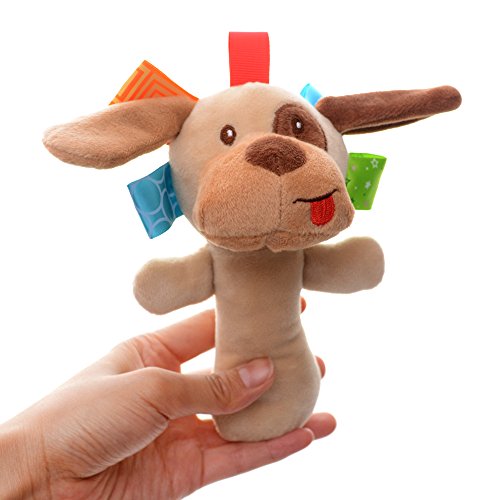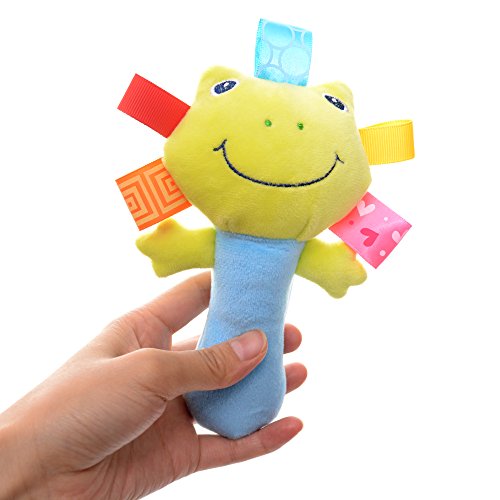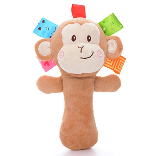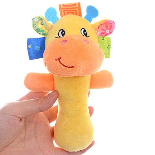 Baby Cartoon Stuffed Animal Plush Hand Rattle Sticker Toys Dolls Made of high quality environmentally friendly plush fabric+ pp cotton filler.