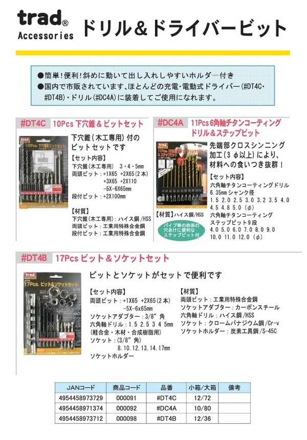 【商品名】(業務用10セット) TRAD 下穴錐&ビットセット 【10本組×10セット】 DT4C 〔DIY用品/大工道具〕