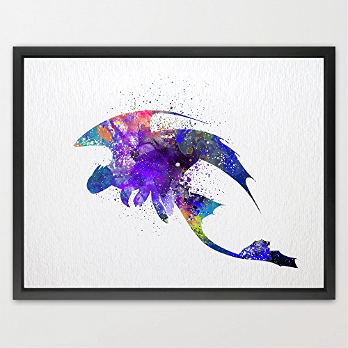 Dignovel Studios 13X19 Toothless Fury How to train your DRAGON Watercolor illustration Art Print Nursery decor Kids Art Print Wedding gift new...