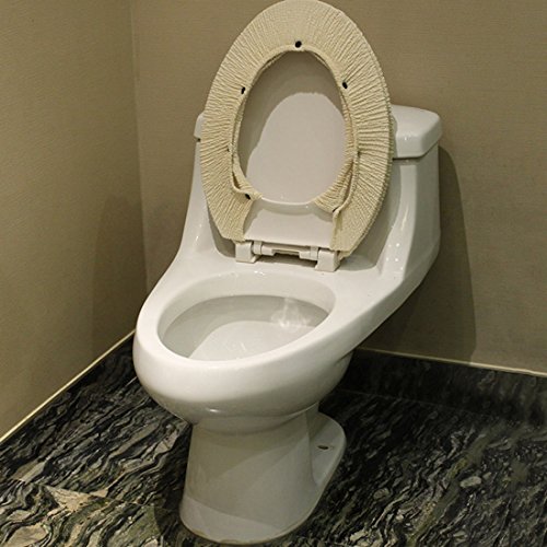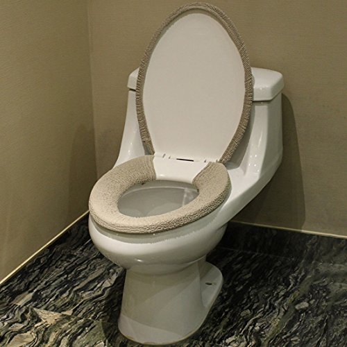 -. Feature : Material: 40% polyester, 59% cotton, 1% spandex / Product Dimension:Toilet Lid Cover ---- 40*45 cm ( 15.75 * 17.72 inch),Toilet Potty Cover--- 43*37 cm ( 16.93 * 14.57 inch ) / Thick, warm,soft and comfortable to use,and stretchable material that fits most of toilets. / Removable and easy to clean( machine-wash& hand-wash),fix with button, please check tips on pictures / Package include:Toilet seat mat*1 pc+Toilet cover*1 pc