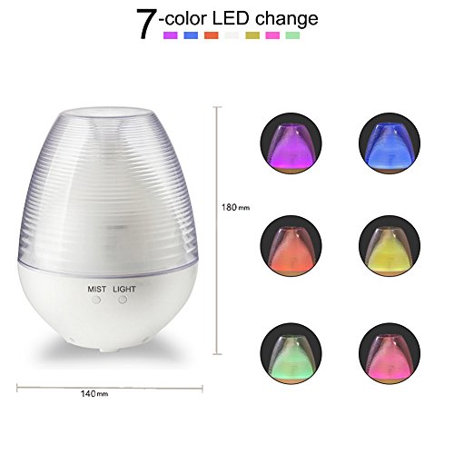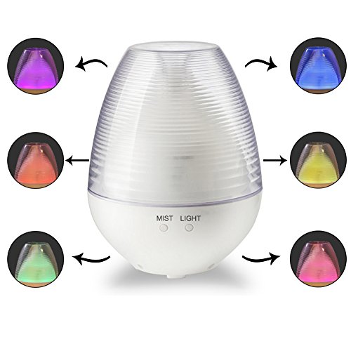 Yzakka 160ml Aroma Essential Oil Diffuser Ultrasonic Air Humidifier with 7 Color LED Lights Changing, 4 Hour Continous Mist Mode Running for Home Office - Waterless Auto Shut-off