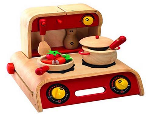 - Feature : Made from rubber wood and strictly using non-toxic paints, dyes and lacquers and formaldehyde free glue while the packaging is made from at least 70% recycled paper / Features a carrying handle and folds into a compact size for convenient storage / Includes a roomy storage area for pots and pans / Knobs turn and make clicking sounds for added fun / Encourages imaginative play