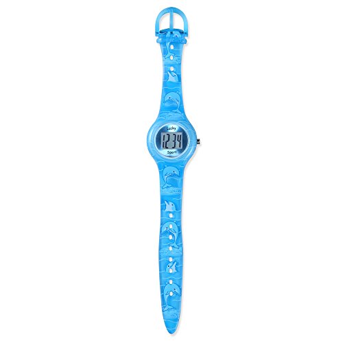 -. Binding : Watch -. Brand : Lucky by Dingbats -. Department : girls -. EAN : 0811077000035 -. Feature : Fun Dolphins theme / Big Digit Digital Display / Time/Day/Date functions / Water Resistant Construction / Limited One Year Warranty / Stainless Steel Caseback / Fits up to a 7 inch wrist -. Label : Too Stars Inc. / Dingbats -. Manufacturer : Too Stars Inc. / Dingbats -. MPN : LKW303 -. PartNumber : LKW303 -. ProductGroup : Watch -. ProductTypeName : WATCH -. Publisher : Too Stars Inc. / Dingbats -. Studio : Too Stars Inc. / Dingbats -. Title : Lucky Kids Digital Watch "Dolphins", Girls Boys, Blue #LKW303 -. UPC : 811077000035