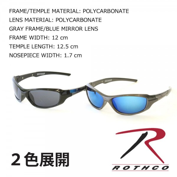 | 軍供給のミリタリーメーカーとして、MIL-SPEC(ミルスペック)基準に沿った物作りをするROTHCO社からリリースされたサングラスはポリカーボネイト製。ポリカーボネイトは熱可塑性プラスチックの一種で軽量で耐衝撃性に優れた素材。弾丸が貫通しないということからサングラスのレンズに使用するケースは多くあったが、今回は一部を除き全体をポリカーボネイト製でつくられました。 |