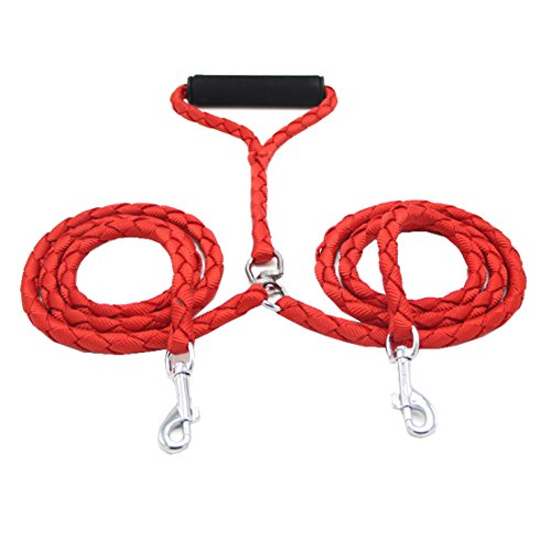 1.we have 6 colors for you choose, Red Black braided,Red Yellow braided,Blue Black braided,Black,Red,Blue,the color is bright and looks fashion.when you use our two-dog leash,that is so easy to walk two dogs together and have one hand free,that is comfortable. 2.Some person still use one simple leash or two different leashes to led pets when they go out walking,that is not safe and not easy to look after two dogs,if you use our leash,everything is easy. 3.Sometimes two dogs will run different way and make the leash twist together,Our leash use upgraded swiveling coupling piece allows the dogs to move with freedom without twisting up the two lead extensions. 4.Our leash used the strongest nylon/polyester material,braided,you can use years to come,it will not break,the handle is soft and durable,comfortable and easy control the dogs. 5.Money back guarantee,do not worry if you purchase our products and find the products not as expected,we can refund all the money to you.in fact we make sure your satisfiction for this products really very nice! Our products are backed by a Lifetime Warranty against defects in materials and workmanship. We develop all of our products to look great and last! We also believe in giving back.Nothing But The Best For Your Best Friends! 0