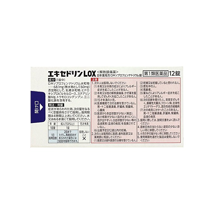 원본상품명: 【第1類品】エキセドリンLOX 12錠 ※セルフメディケション制象商品