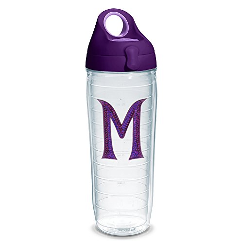 Tervis Initial Purple Sequins M Emblem Water Bottle with Royal Purple Wb Lid, 24oz, Clear