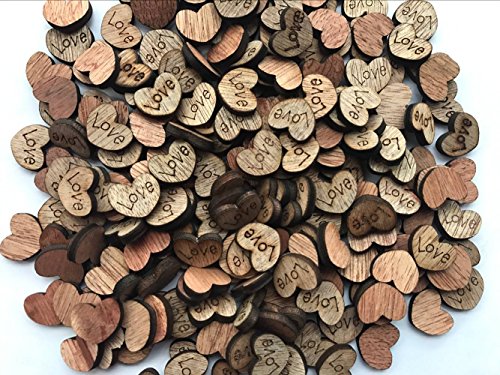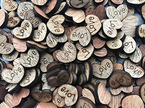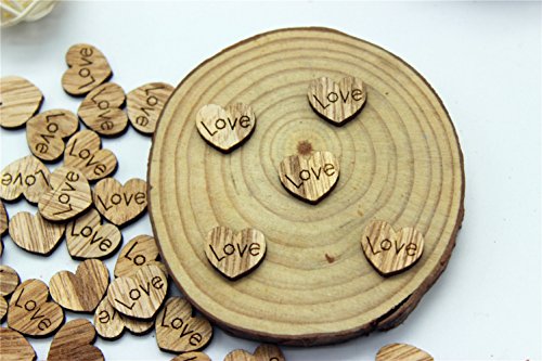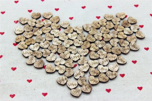 JBENG 200pcs Mini Creative Engraved LOVE Word Decorations Rustic Wooden Love Heart Wedding