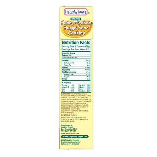 -. Feature : Made for growing kids: Our Healthy Times Organic Ha Bear Honey Graham Cookies are made with wholesome natural ingredients and no artificial colors, flavors or preservatives for a nutrient-rich snack your child will love. A good source of calcium, iron, zinc and B vitamins for healthy growth and development. No soy or palm oil. Non-GMO Project Verified / Good for you and them: Your child will love the delicious, homemade taste of this crunchy cookie, and you'll love knowing they're getting nutrients hidden in a sweet snack. Made with whole grains, kosher dairy and organic honey / Little bears for little hands: Kids will love the cute bear shapes and flavors of these yummy USDA certified organic cookies made just the right size for little hands. Try all four of the Organic Ha Bear Cookie flavor varieties: Chocolate, Chocolate Chip, Honey Graham and Vanilla. / Explore all of our products: We make USDA certified organic, preservative-free and artificial additive-free foods with the best ingredients for a child's growth and development. Discover all of our products, such as whole grain cereals and arrowroot cookies. / Only the best for your baby: Compare our Healthy Times Organic Ha Bear Cookies - made with certified USDA organic, non-GMO Project verified ingredients - to other brands, such as Happy Baby, Gerber Graduates, Plum Organics, Brandt, Baby Mum Mum and Earth's Best.