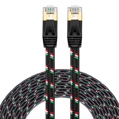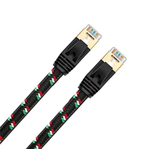 Premium Quality: Extra-Strong Flat Cat7 Ethernet Cable with Special Tangle-free Design and Woven Nylon Braid Sleeve Jacket for Long-term, Rugged Durability