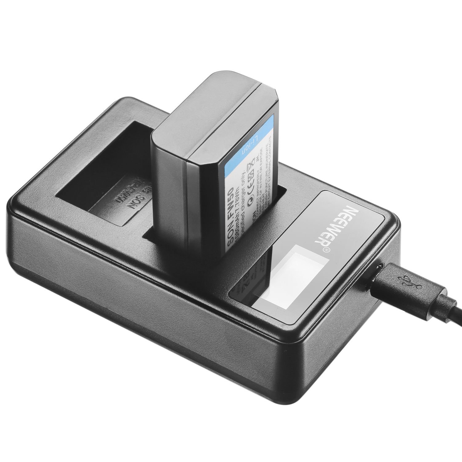 I bought this charger at the same time when I purchased two sets of compatible batteries made by Newmowa. When using the Newmowa battery with α55, there was no size problem, so it was possible to insert the battery into the charger without problems with this product. Charging indicator seems to work normally, it is very convenient. Because USB is used for power supply, USB charger is used. I tried charging the computer with USB, probably impossible, but I tried charging it with a mobile battery. It was useful when you need to charge suddenly on the go. Size as a charger is also about the same as SONY genuine charger so it is saved.