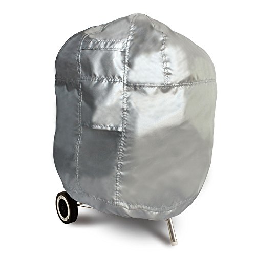 - Feature : The kettle style charcoal gill cover is made of 210 Denier Polyester with silver coated, fits kettle charcoal grills up to 26.5 in.D x 38 in. H / Handles for easy fitting and removal, air vents reduce inside condensation and wind lofting / Strips lock around the legs to secure the cover on windy days, hangs almost all the way to the ground to protect the legs / Double stitched seams add strength and durability in the strong wind, adjustable elastic hem cord for a tight and custom fit / Water resistant/UV stable and breathable material for maximum protection, manufacturer two years warranty.