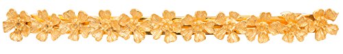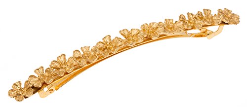 Studio : L. Erickson Publisher : L. Erickson Binding : Misc. Product Description L. Erickson Posy Long and Skinny Barrette is a beautiful accent piece. Handcrafted by Italian artisans using classical metalsmithing techniques, the etched metal barrette is an heirloom quality addition to your collection. With its decadent floral design and lustrous gold finish, this stunning barrette will lend a luxurious touch to any ensemble. 0
