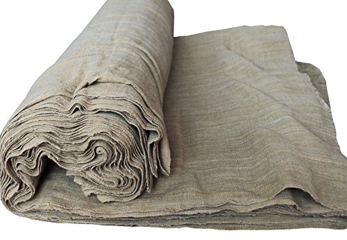 RaanPahMuang Hand Loomed Thick Raw Cotton Fabric Green Brown 30 inch x 1 yard