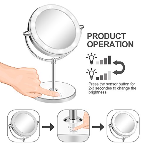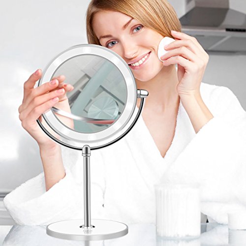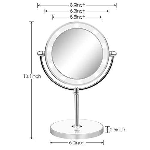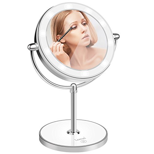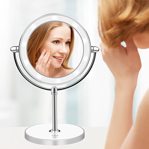 Double-Sided Lighted LED Makeup Mirror, 1x/10x Magnification, Vanity and Travel Mirror, makeup mirror 13-inch Height, Polished Chrome Finish