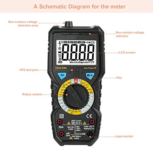 Digital Multimeter, LIUMY 6000 Counts Electronic Multi Tester with RMS, Non Contact AC DC Detector, Portable Amp / Ohm / Volt / Multi Meter Temperature, Continuity Test with LCD Backlight
