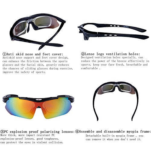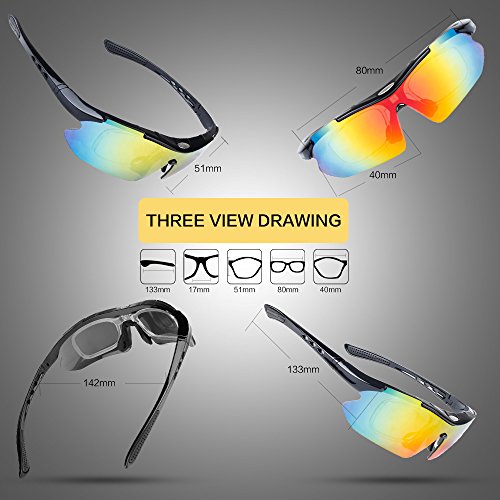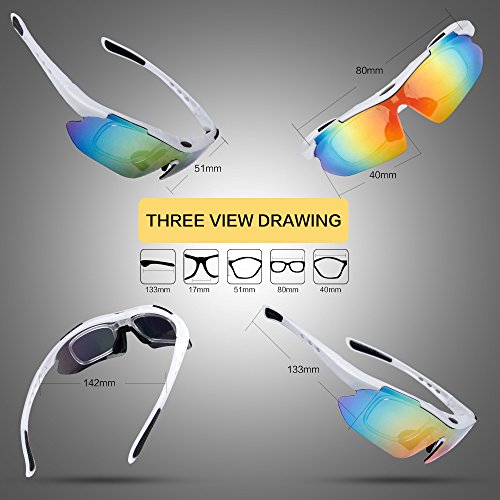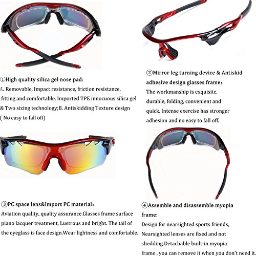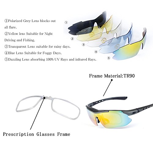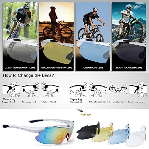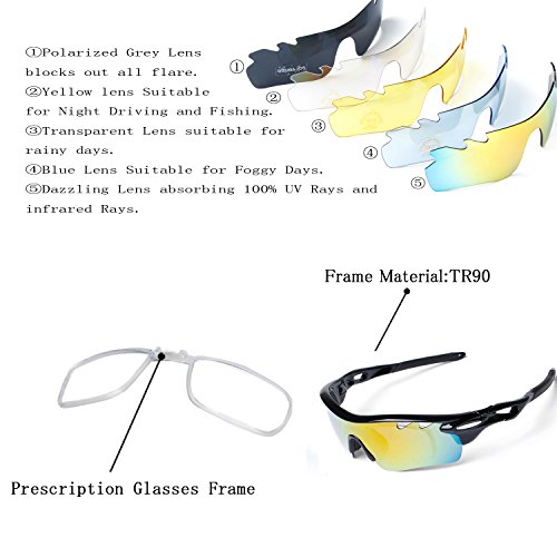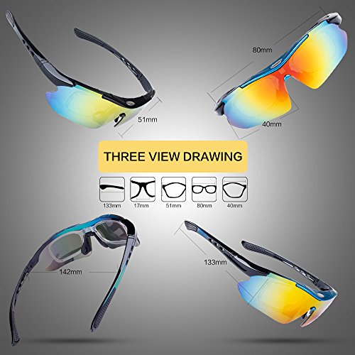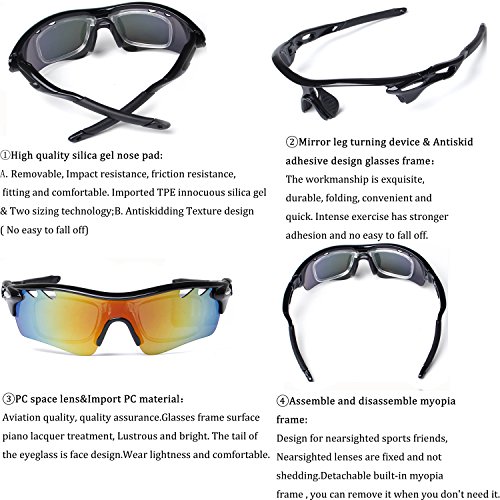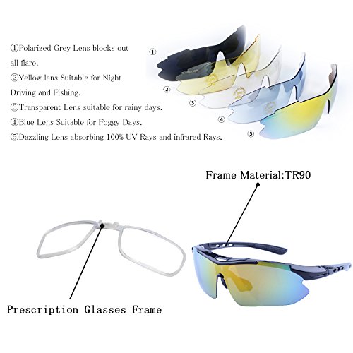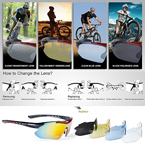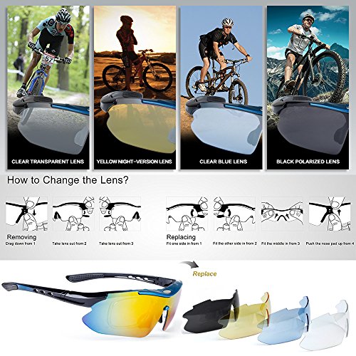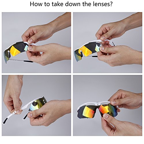 How to remove lens: Sides-to-Middle 1). Hold one end of the lenses, slightly pull out the frame of that side to take out lens; Repeat at the other end. 2). Gently push the middle part and slide the lens out of the groove. 3).The detachable myopia frame have no lenses.You can take it to the myopia glasses shop and get the right lenses for you.But if you are not near-sighted you can remove it easily. Tips: 1). Although the frame is very difficult to break, it is a better idea not to pull it out too hard to cause deformation. 2). Never leave your sunglasses under car's front window, especially in summer. Prolonged exposure to the oven-like temperatures inside a car can degrade the lens. 【Different occasions use different lenses】: Dazzle colour lens - Cool and fashionable.It is the main characteristics of hd,give you a clear world,choice for cycling,daily leisure,travel. Light blue lens - Reduce the light into the eyes,prevent dazzling,but does not affect the visual clarity,choice for running,mountain climbing. Yellow lens - Lighten up the weak light,choice for night riding,driving. Grey lens - Can prevent strong light entering the eye,choice for golf,baseball and hiking. Black polarized lens - Anti-glare,Suitable for driving,fishing,climbing,cycling. 【PACKAGE】 1) Hard Protection Box 2) Lenses Pouch 3) Cleaning Cloth 4) Hang Rope 5)Myopia Picture Frame 6) Glass Frame 7) Five Lens(the black one is polarized lens) 8) Polarization Test Card 30 DAY MONEY BACK GUARANTEE- All ABAOLUX customers enjoy 30 Day Money Back Guarantee. Customers can return and get refunded in case the purchasing is not satisfactory for any reason. You have no risk to try.