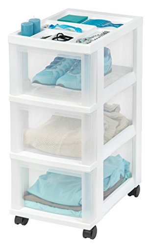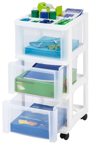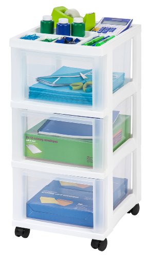 IRIS 3-Drawer Storage Cart with Organizer Top, White