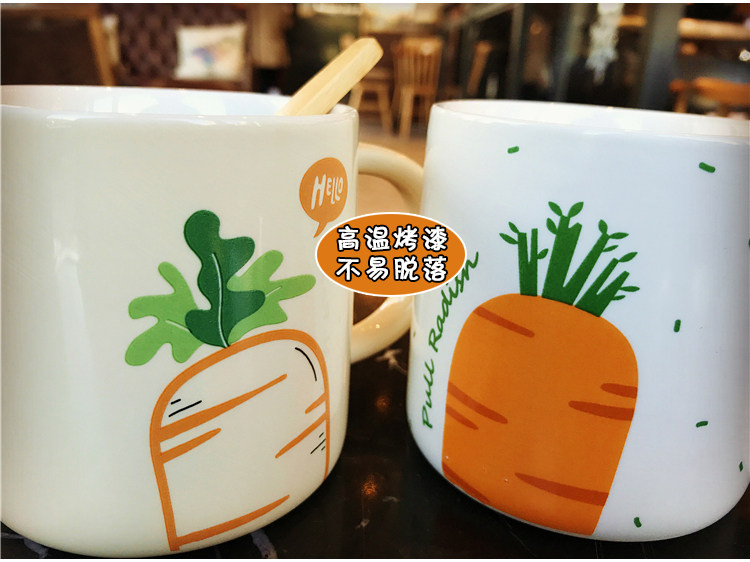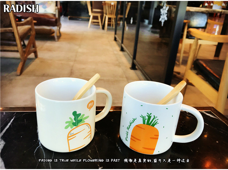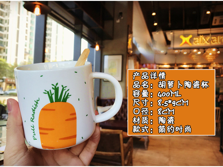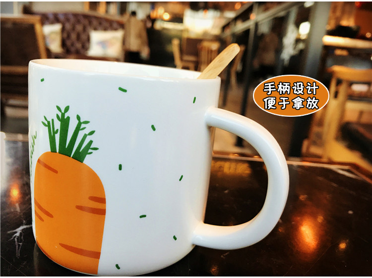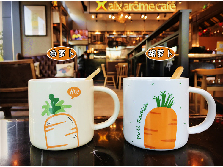 日式卡通胡萝卜带勺马克陶瓷水杯男女情侣办公室可爱咖啡奶茶杯子