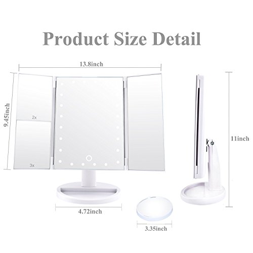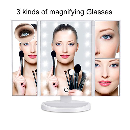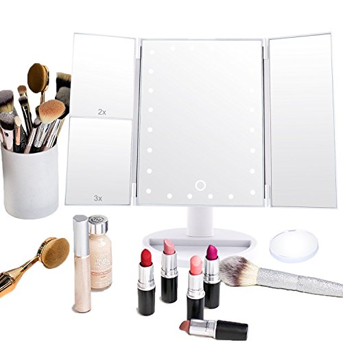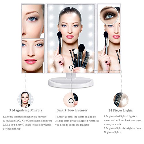 Dash Led Lighted Vanity Mirror Make Up Tri-Fold with 24Pcs Lights 180 Degree Free Rotation 2X, 3X And A Removable 10X magnifying …
