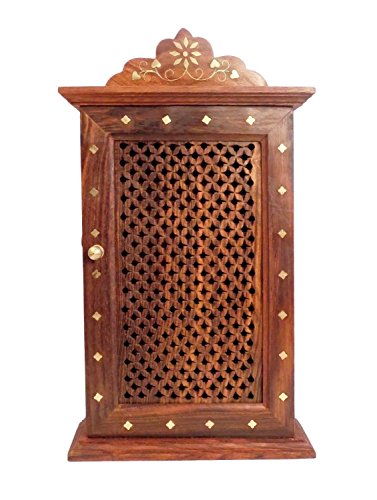 Best Present for Your Lovely Valentine, Handcrafted 13" Wooden Key Box, Net Design Key Holder, Key Hanger, Wooden Key Rack for Wall, Wall Mounted Key Hooks, Brown Color