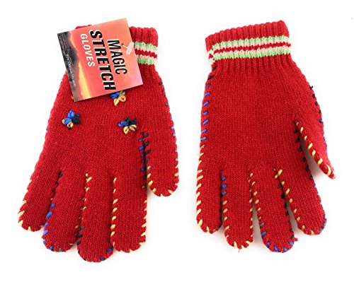 (A1)/Accessories/Cold Weather Accessories/DIRECT FROM USA/Ladies Floral Design Magic Stretch Gloves Mittens, One Size Fits Most (Red)