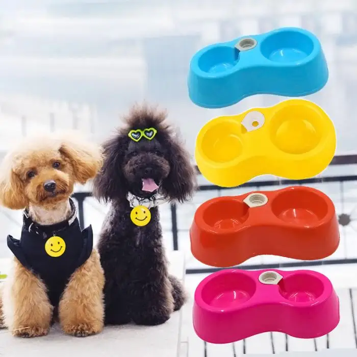 Pet Feeder Plastic Dual Port Automatic Feeder Water Drinking Feeding Basin Bowls For Cats Pet Dogs without Bottle TB Sal