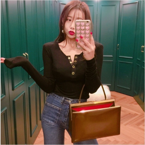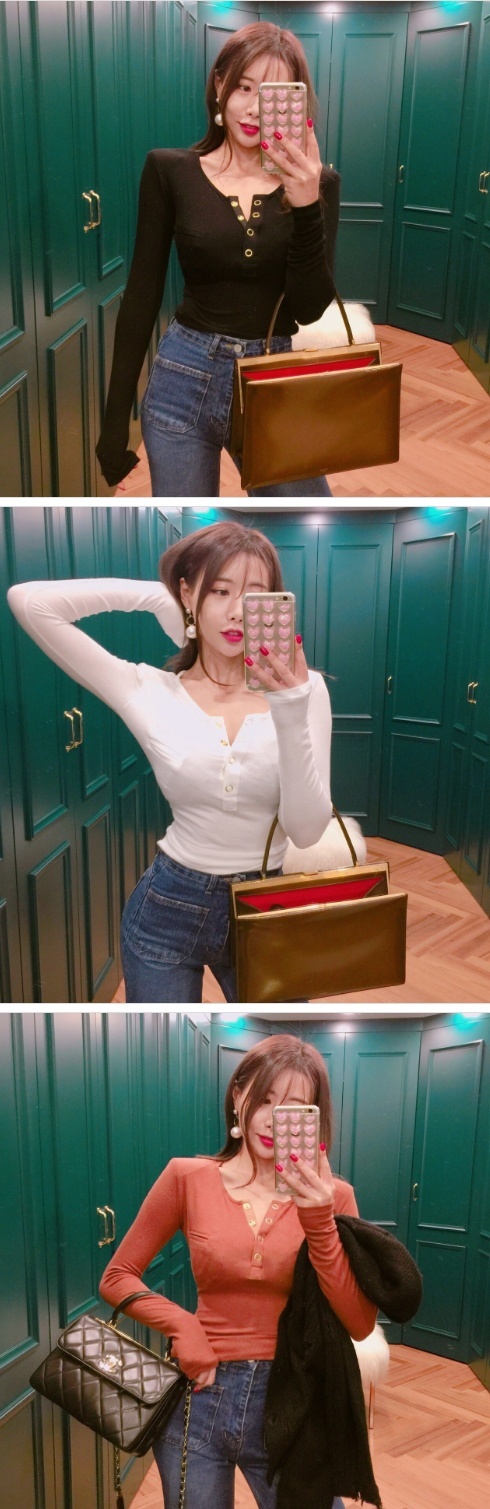 Women`s Golden Buttons Accents T-shirts Black Camel Ivory