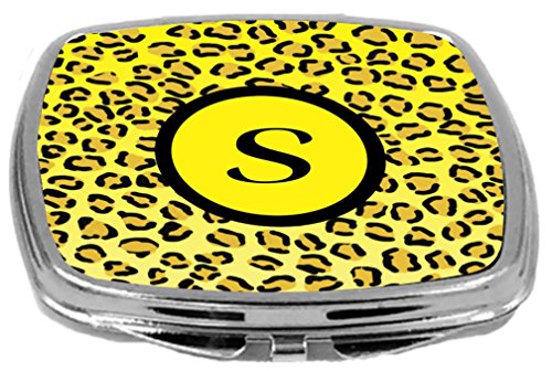 Rikki Knight Compact Mirror, Letter s Initial Yellow Leopard Print