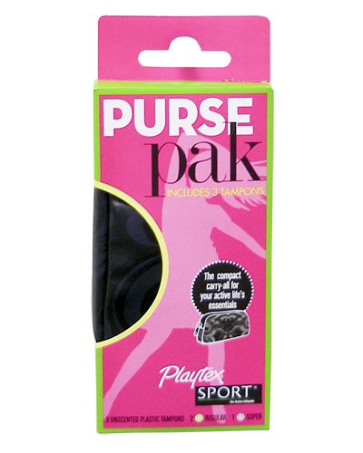 Playtex Sport Purse Pak - an attractive and discreet carrying case for your active life's essentials. Includes 2 Regular and 1 Super Unscented Plastic Sport Tampons - BlackFeature