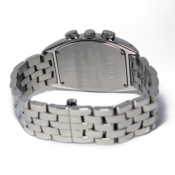 エルジン ELGIN ステンレス クロノグラフ 時計  商品仕様:(約)H42×W35×D11mm (ラグ、リューズを除く)、重さ(約)138g、腕回り最大(約)20cm、最小(約)15.5cm ステンレス(ケース)、ステンレス(ベルト) 専用BOX、取扱説明書、保証書