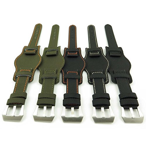 Material: Nylon w/ Genuine Leather Backing | Buckle: Brushed Stainless Steel Pre-V Buckle