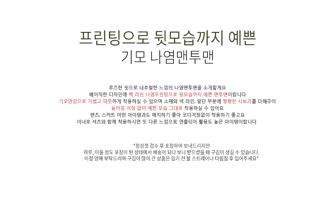 .같은 사이즈라도 체형에 따라 핏감이 조금씩 다를 수 있습니다.