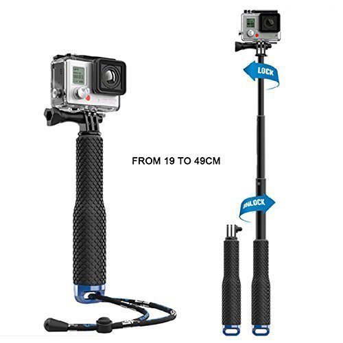 Calas Hand Grip Extendable Waterproof Handheld Selfie Stick for GoPro Fits for GoPro 5 4 3+ 3 2 1 Camera (Blue)