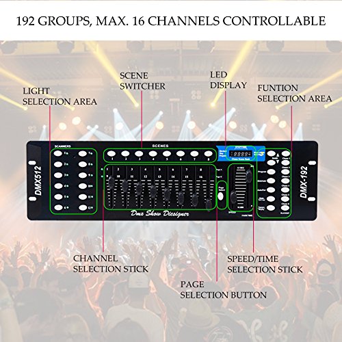✔ With 192 group of channels, Controls Up To 12 Intelligent Lights Of Up To 16 Channels Each, Can control up to 12 fixtures and up to 240 different scenes!