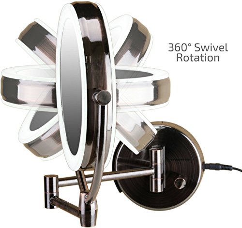 - COMPREHENSIVE – This dual-sided 360° swivel design luxury mirror features 1x10x magnification. 1x for a great view of your entire face all at once, and 10x for precision, because every detail counts (7.5” diameter)