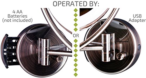 Ovente LED Lighted Wall Mount Makeup Mirror, 7.5 Inch, Battery or USB Adapter Operated, 1x/10x Magnification, Antique Brass (MLW75AB)