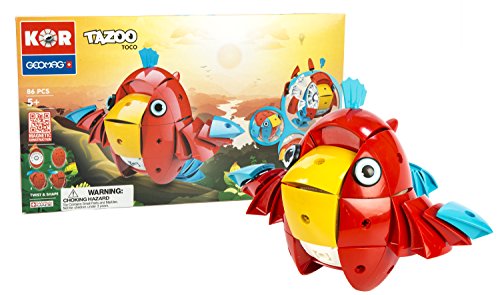 -. Feature : REVOLUTIONARY MAGNETIC ENGINEERING - This playset lets kids engage in diverse constructive play with just one toy. A patented system of magnetic building blocks that connect onto a metal sphere core, get ready to twist, transform, disassemble, and reassemble! Fully compatible with other Kor sets for added creativity and ingenuity. / KOR TAZOO TOCO TRANSFORMER - In space a geomagnetic storm caused a migration of Kor asteroids. After landing on earth, they created zany, transformative animals. Toco is a parrot, or sunfish, or anything you can imagine! Unisex for both boys and girls. / EDUCATIONAL AND STIMULATING - Geomag's award winning line of products help children of all ages develop imagination and curiosity through the science of magnetic construction. Each year, Geomag introduces new and innovative toys that entertain, delight, and stimulate young and growing mental faculties. / SWISS MADE FOR SAFE PLAY - Geomagworld SA manufacturing complies with the most rigorous European and international safety standards. At our facility in Novazzano, Switzerland we follow each production phase step by step to ensure each product adheres to the highest safety standards. / SPECIFICATIONS - Geomag Kor TAZOO Toco contains 86 pieces. Warning: CONTAINS SMALL PARTS. Not suitable for children under the age of 3. Recommended for children ages 5 and up. Warning: CONTAINS STRONG MAGNETS. Keep away from sensitive devices such as credit cards, computers, magnetic media and medical devices like pacemakers.