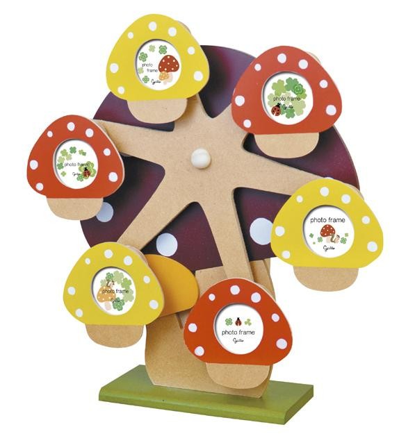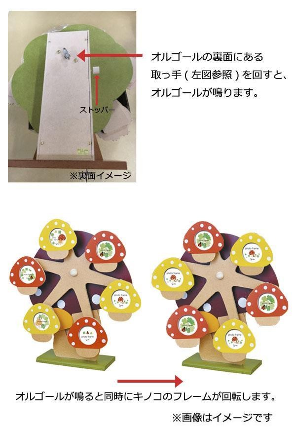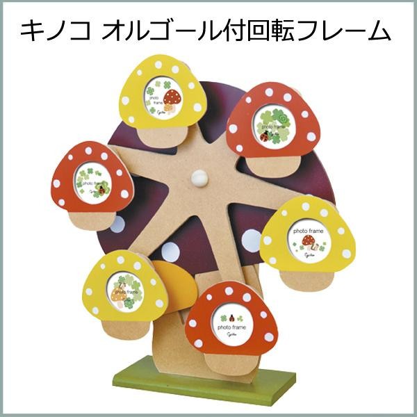 | キノコをモチーフにしたオルゴールです。6枚のフォトフレームが回転します。プレゼントにも、お洒落なインテリアとしてもオススメ。 |