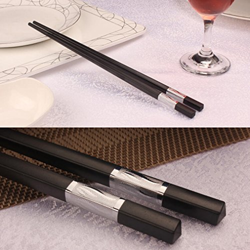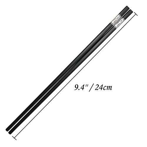 PRODUCT INFORMATION - Chopsticks Length: about 9.5 inches/24cm. Made of alloy with a stainless steel wrapping at the top of the chopsticks. The decorative bands on the top is stainless steel material add just the right amount of weight and they are connected to the chopstick well, so that you don't need to worry about them coming off.