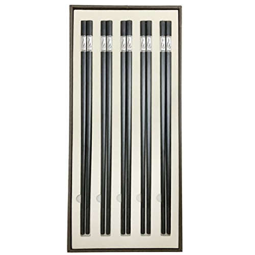 Reusable Alloy Chopsticks Chinese Non-toxic Gift Set for Kitchen and Hotel (9.5''/24cm, Silver, Pack of 5 Pairs)
