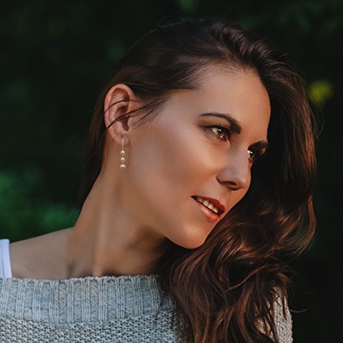 Cultured freshwater pearl dangle earrings featuring 3 linked graduated pearls (5.0-7.0mm)