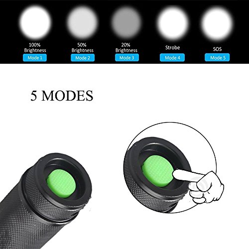 5 LIGHT SWITCH MODE: Full Brightness(1000 Lumens), Medium Brightness, Low Brightness, Strobe Brightness,SOS.