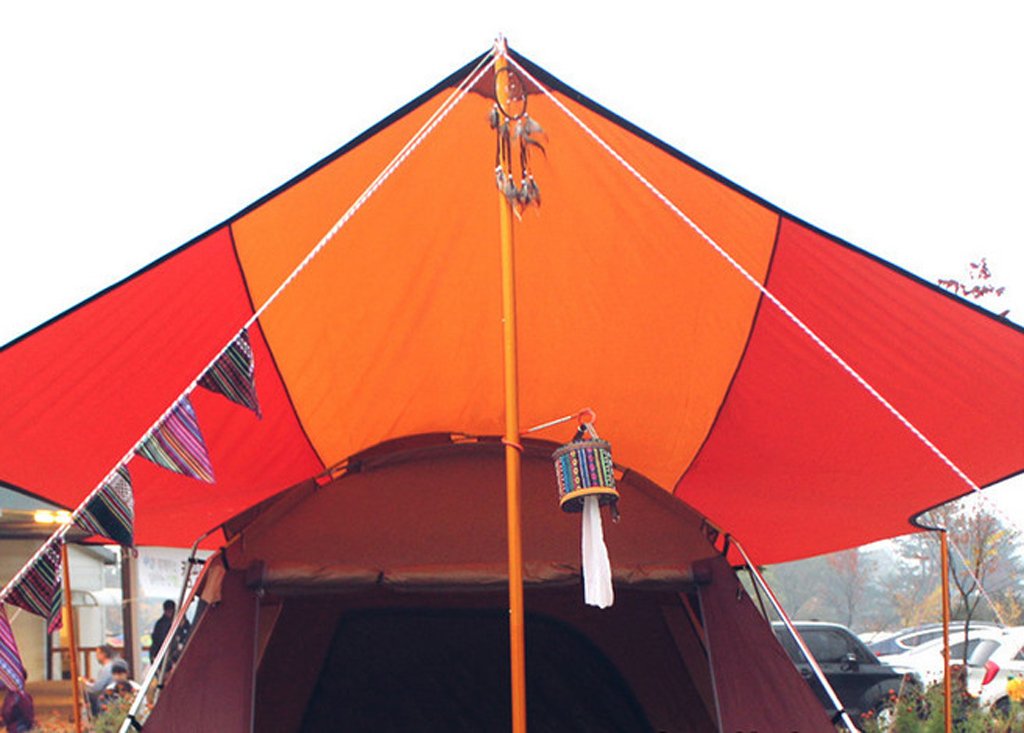 At the camping time you can hang up with two hanging rings in the middle and side part, string or branch
