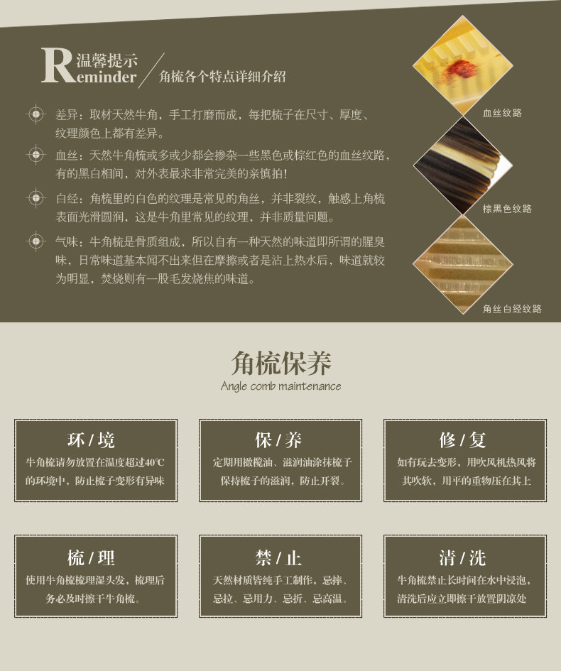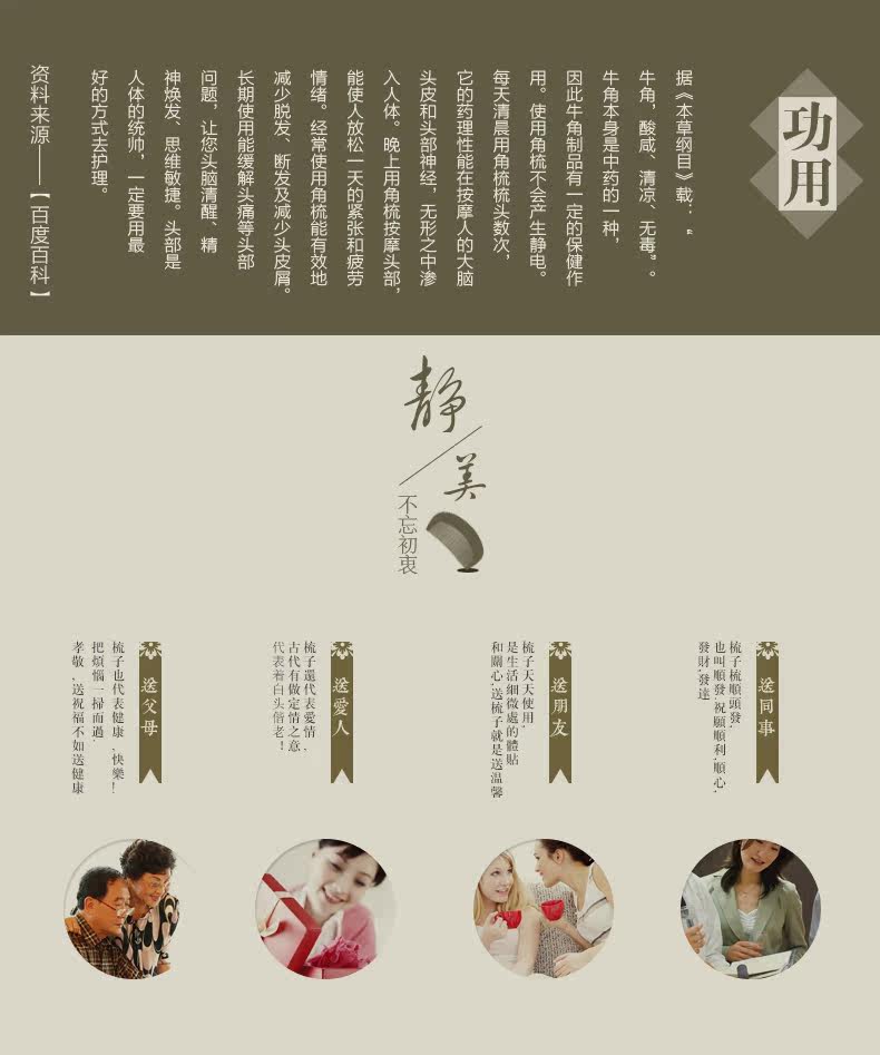 天然黑牦牛角梳 黑水牛角梳子多功能按摩梳