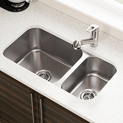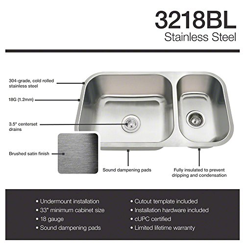 3218B 18-Gauge Undermount Offset Double Bowl Stainless Steel Kitchen Sink