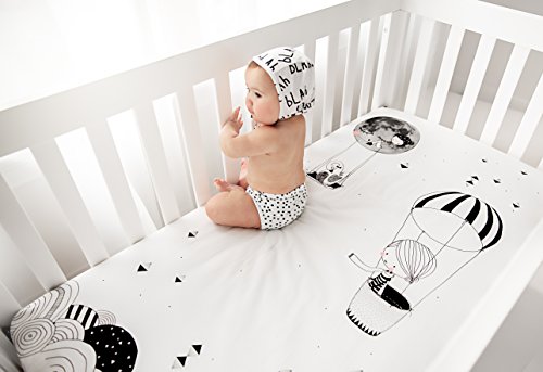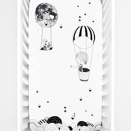 Rookie Humans 100% Cotton Sateen Fitted Crib Sheet: Frieda and the Hot Air Balloon. Complements Modern Nursery Room, Use as a Photo Background for...