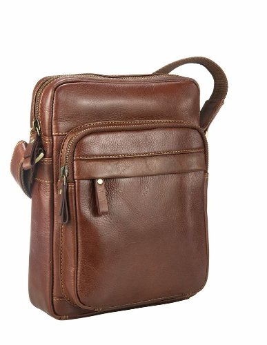 -. Feature : Genuine full grain hand made soft tanned leather from the popular Visconti Vintage Collection / Adjustable shoulder strap -max 56" Ideal size for IPad/Tablet / 2 outer flaps with thick padding between pockets / Large main compartment with cell pocket and a secure inner zipped pocket / Contrast Stitching