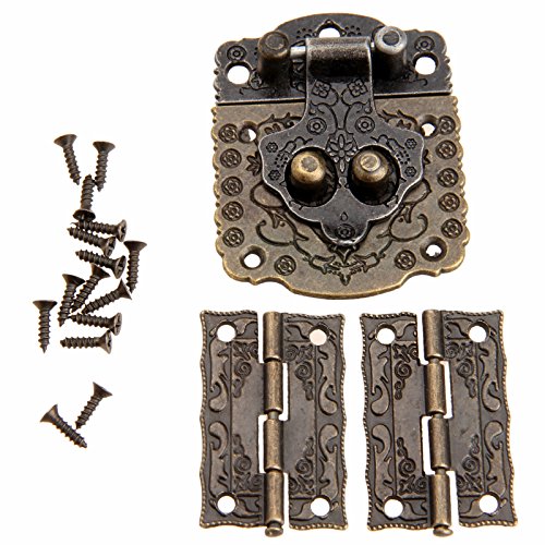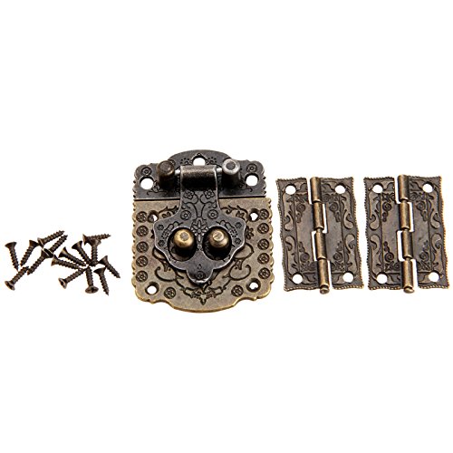 Dophee Decorative Wood Case Box Antique Embossing Hasp Latch Lock with Mini Hinge and Screws