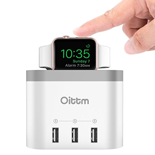 -. Title : Oittm Apple Watch Stand, [2 in 1] 4 Ports USB 3.0 Hub Desktop Smart Charging Station USB Wall Charger with Intelligent Auto Detect Technology for iPhone, iPad, Samsung and More